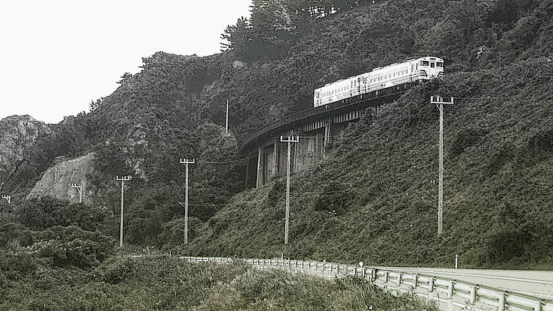 秋田県の日本海沿いは変化に富んだ風光明媚な海岸が続きます。 海岸に沿って走る五能線は、秋田県能代市の東能代駅と青森県南津軽郡の川部駅を結ぶ約150Kmの鉄道です。 私は東能代駅から青森県十二湖駅間を、自転車で往復しました。 今迄いろいろなところでサイクリングしましたが、思い出深いコースの一つです。