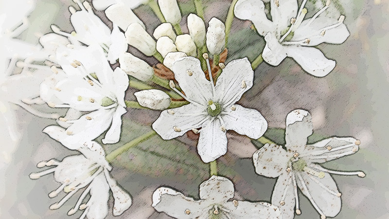 白い花が、手まり状に集まって結構美しい。