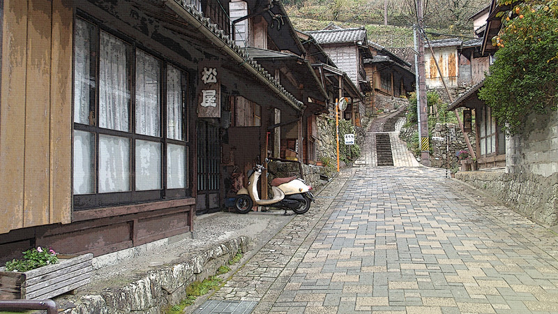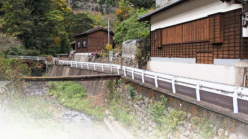 宇津ノ谷の集落は、静岡市の西端、旧東海道の丸子宿と岡部宿の間に位置し、街道を往来する旅人たちが休憩した静かな山あいにある40戸ほどの集落です。 昔の面影を残したまま整備された集落で、ここから旧東海道の宇津ノ谷峠がスタートします。 旧東海道の原形を残した峠道としては、箱根や鈴鹿峠が有名ですが、宇津ノ谷峠も寂しい感じのする、旧道らしさ満点の峠道です。