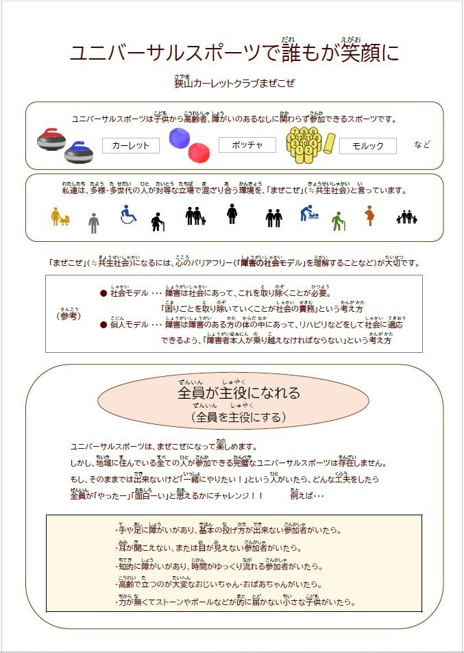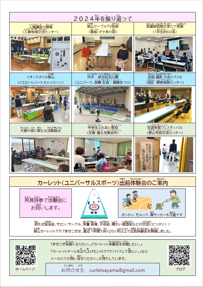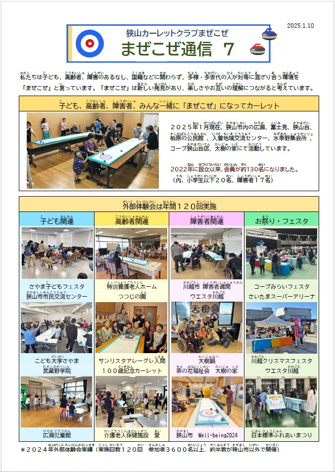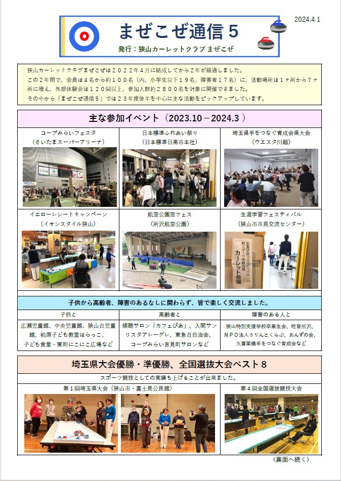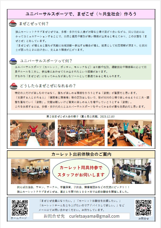 *当ホームページに掲載されている写真は狭山カーレットクラブまぜこぜが広報での使用のみ許可を得ています。