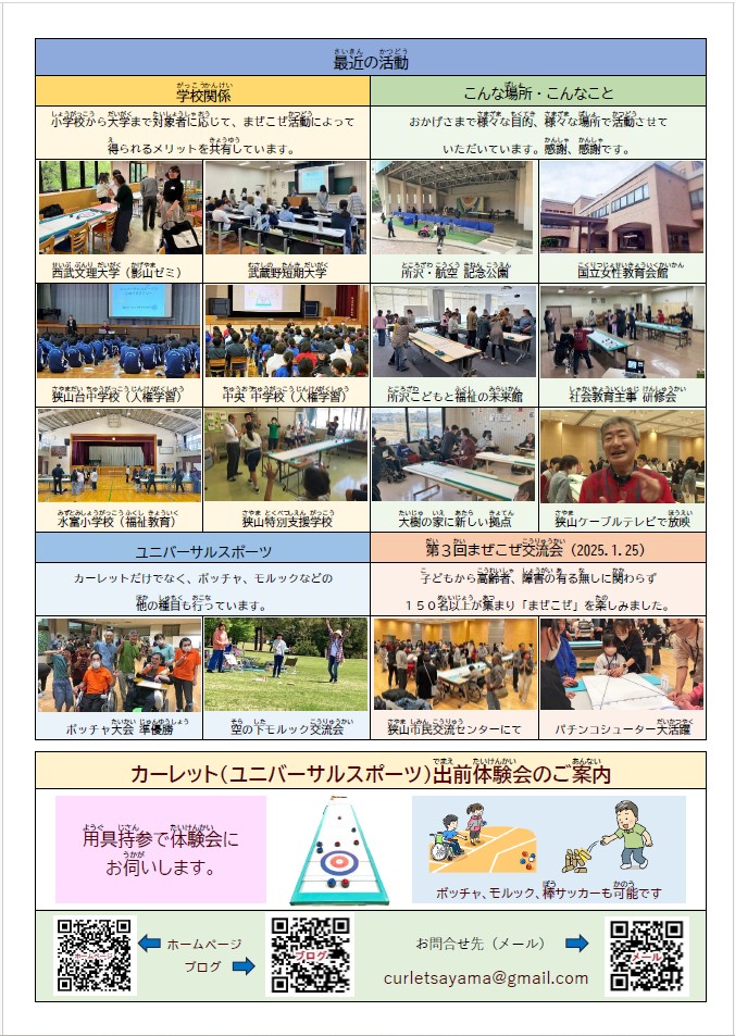 *当ホームページに掲載されている写真は狭山カーレットクラブまぜこぜが広報での使用のみ許可を得ています。